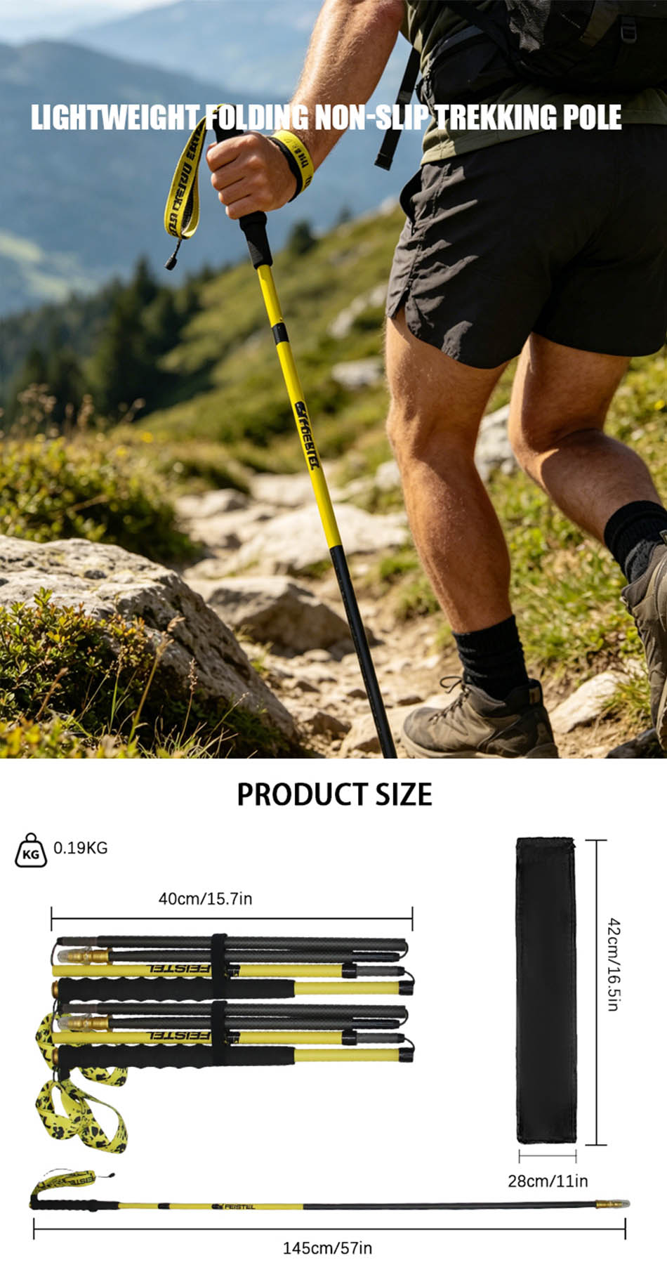 Brand: ANHUI FEISTEL FACTORY Relate Manufacturing: OEM & ODM Product: Lightweight, durable 7075 aluminum trekking poles with foldable design, improving stability, balance, and reducing strain on challenging hikes.