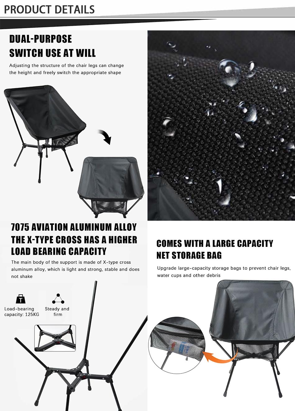 This Folding chair ingeniously adopts a new x bracket design, so that it can easily fold and expand without taking up too much space. Keep it away at any time and put it in your bag, so you can carry it without any extra effort. When you need a resting place, just raise your hand and it can unfold, providing you with a comfortable and powerful support.