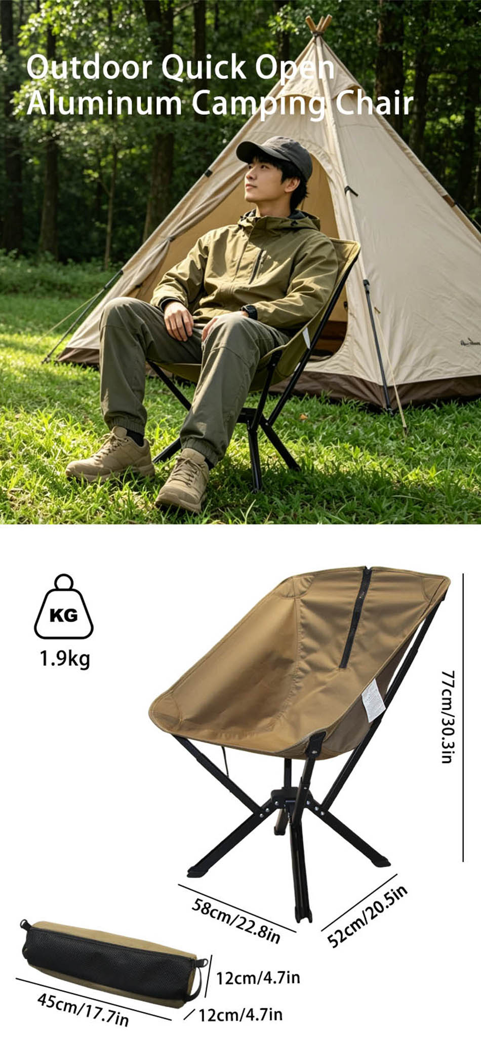 Aluminum Portable Outdoor Travel Quick Open Fold up Compact Ultralight Folding Camping Chair:
