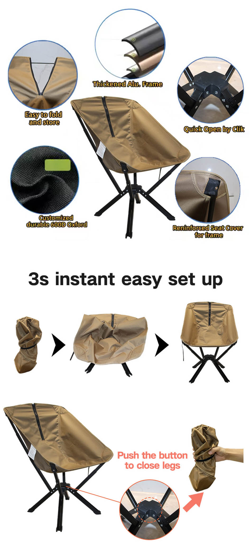 Aluminum Travel Quick Open Fold up Compact Camping Chair