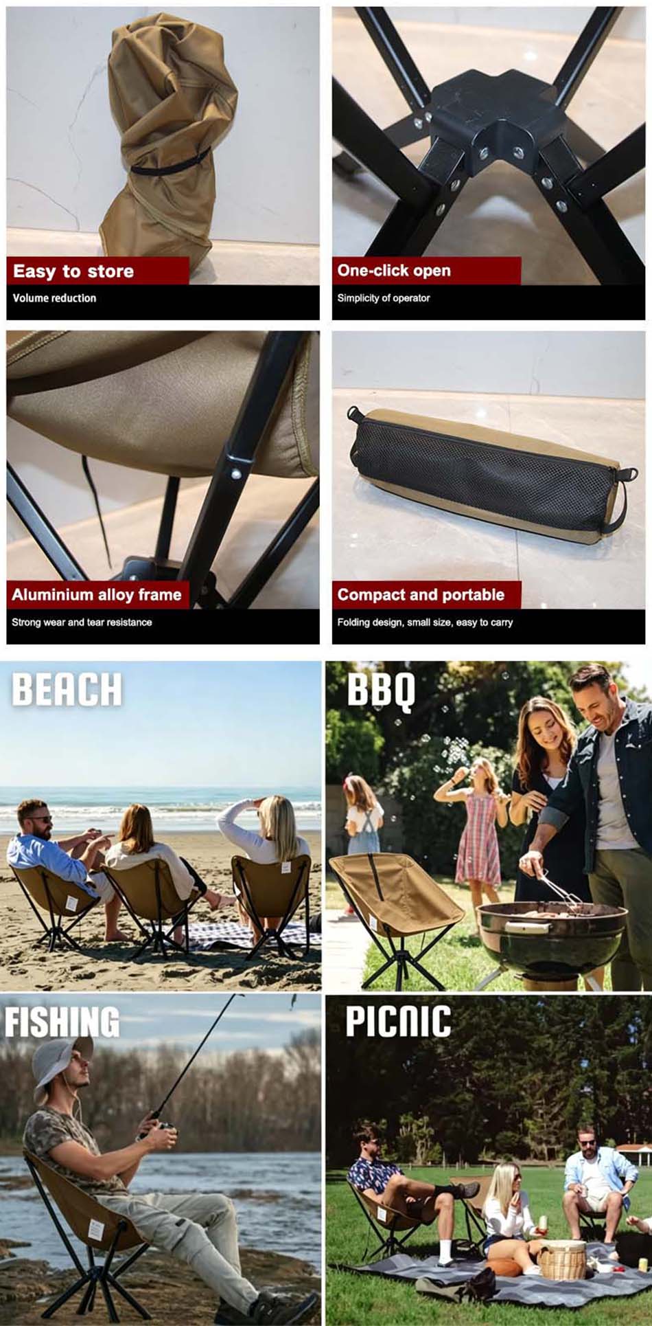 Lightweight Folding Portable Aluminum Camp Chair Outdoor Moon Camping Chair