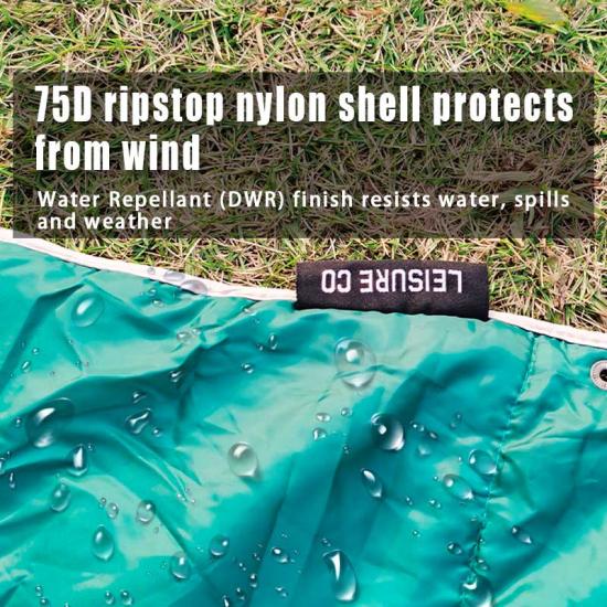 1. This nylon camping outdoor blanket is made of 20D nylon material with a DWR durable waterproof coating material on the surface, making it more windproof and waterproof, providing warm comfort in cold winds.