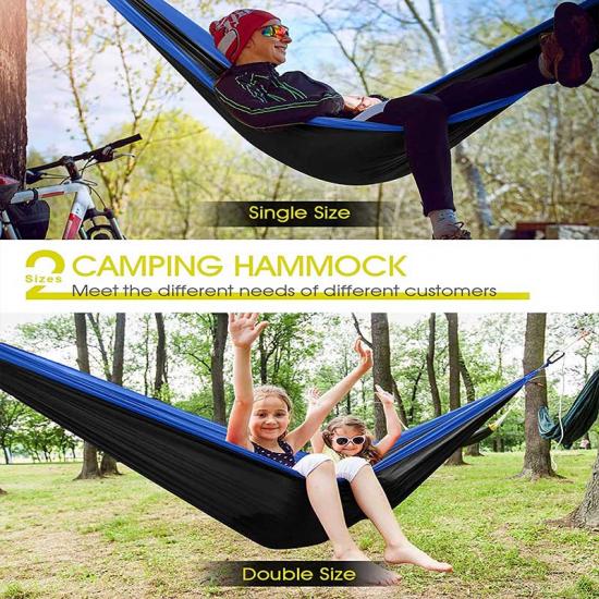 1. This outdoor camping hammock is available in a variety of regular colors, such as blue, black, gray, green, orange, etc. These colors are customized according to your needs, if you have more cool colors, we also support customization.