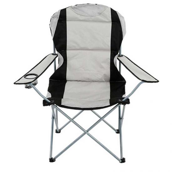 Extra large padded camping chair with lightly cushioned seat and back for comfort; Beverage-cooler pouch (hangs from armrest) holds up to four 12-ounce cans