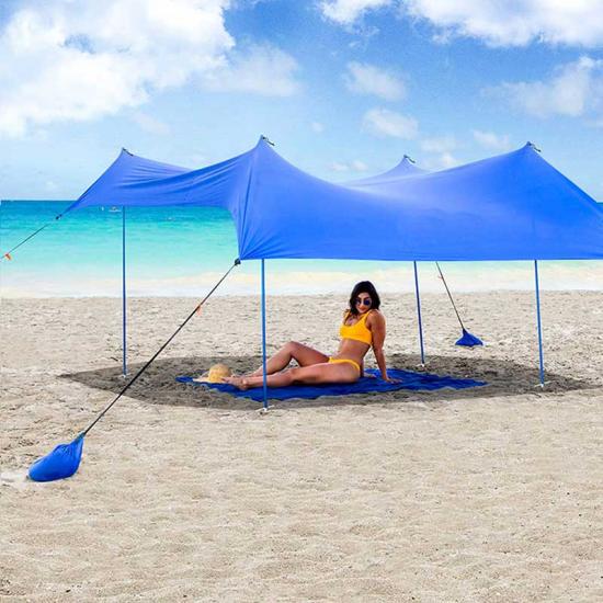 As the sun moves throughout the day, use 2 or 4 poles to position the poles and find the perfect shade for the beach.