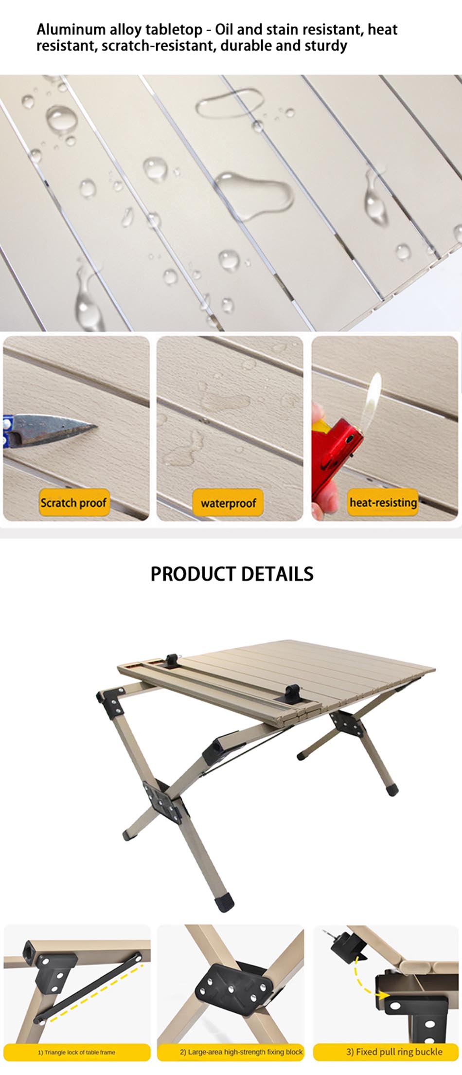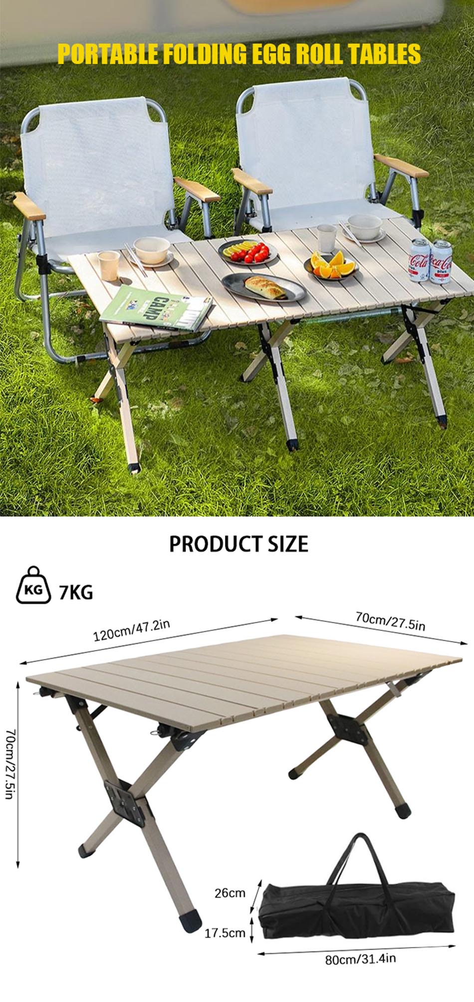 Brand: ANHUI FEISTEL FACTORY Relate Manufacturing: OEM & ODM Product: Outdoor Portable Folding Roll Up Picnic Table: Lightweight, durable aluminum design with adjustable height, easy setup, and compact carry bag for camping, picnics, and outdoor activities.