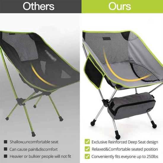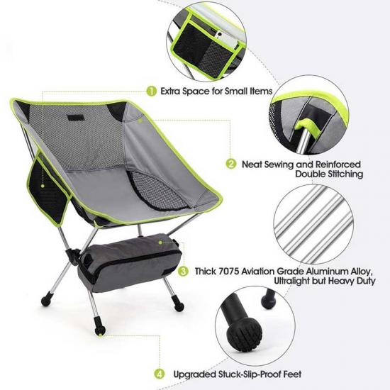 Ultra-lightweight and compact: The folding chair weighs only 2 pounds and can be lifted with your fingers and fits in your carry-on baggage.