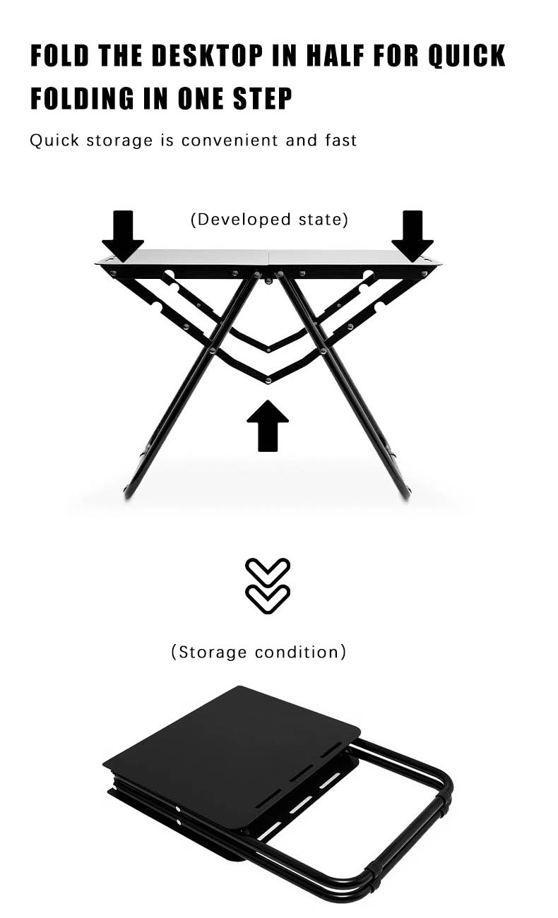 3.You can easily fold the table into a compact size and place it in the provided portable bag.