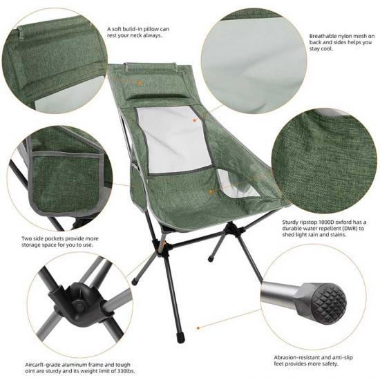 The chair is very light, with a total weight of only 0.9kg, folded dimensions of 35 x 11.5 x 10.5 cm, and comes with a carry-on storage bag, we can customize the logo on the chair and packaging bag to increase your brand