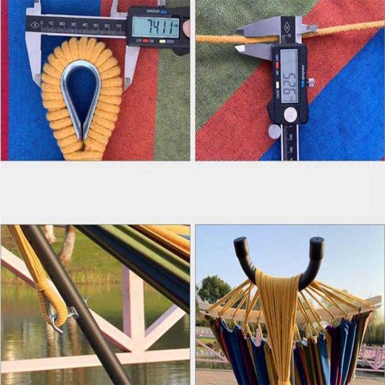 Hand-knotted and the hard fabric at the ends is strong enough to support up to 450 pounds. 2 adults, children and pets can safely relax or take a nap. Knotted loops are specially knotted for durability and strength. The hammocks come with a drawstring tote bag, and each hammock comes with a 78" tie cord, which folds into a compact size when packed for easy storage or portability. It's up to you whether you put it in your backyard, garden, park or use it anywhere indoors or outdoors.