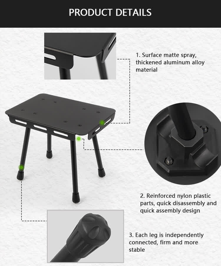 Small camping stool is not only a product, but also a way of life attitude. It emits endless vitality and passion, allowing you to feel the peaceful and beautiful moments of time. It is the best companion in your life, always ready to provide you with the most comfortable chair and convenient storage.