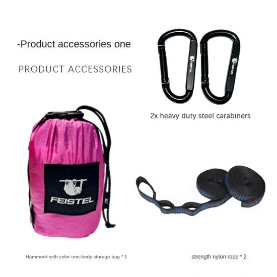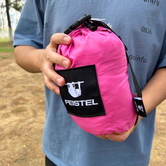 Brand: ANHUI FEISTEL FACTORY Relate Manufacturing: OEM & ODM Product: Lightweight, durable single camping hammock with accessories for outdoor use. Easy setup, compact storage, ideal for travel, backyard, or hiking.