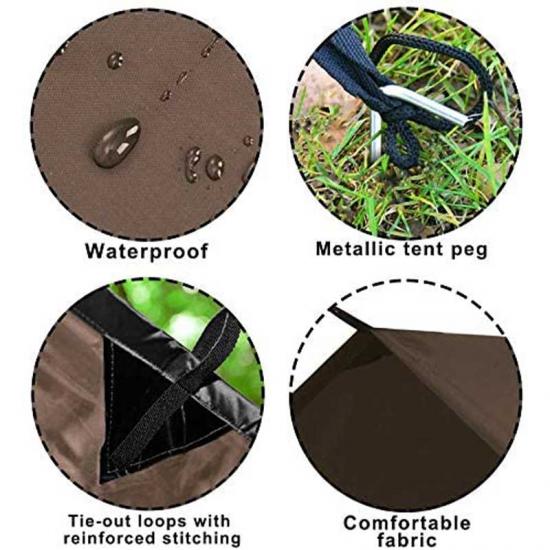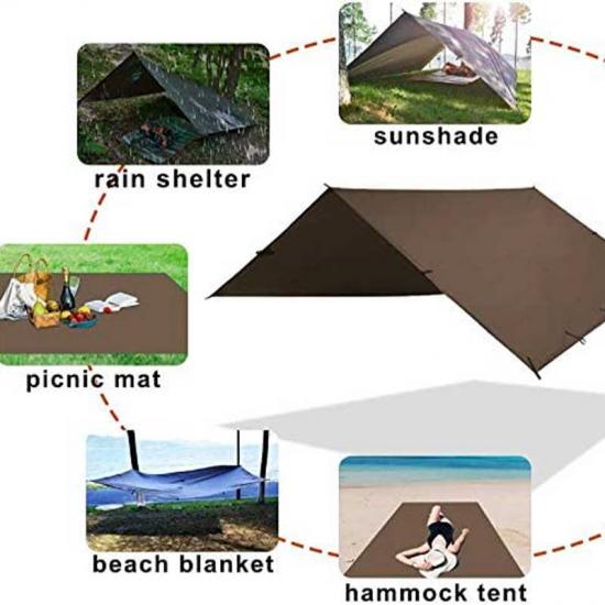 Large hammock tarpaulin for family, couple or friends. Whether lying down or sitting with a friend, our hammock tarps are the perfect size. Each stress point of the camping tarpaulin is reinforced with multi-stitched nylon webbing. and the surface of the webbing is stressed evenly to improve the durability and stability of the entire tarpaulin. Camping tarps are made of non-tear and puncture-resistant materials for a secure and stable hold.