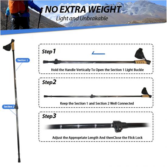 AntiShock Retractable Carbon Hiking Stick For Hiking