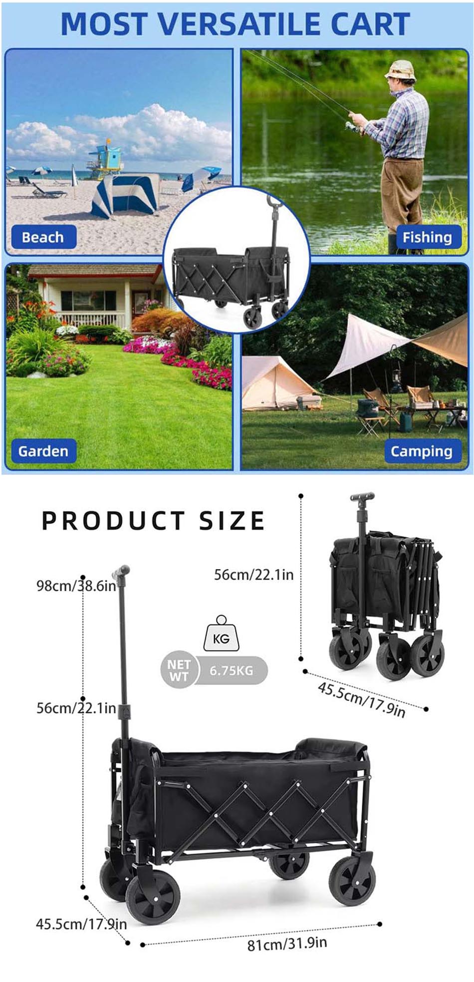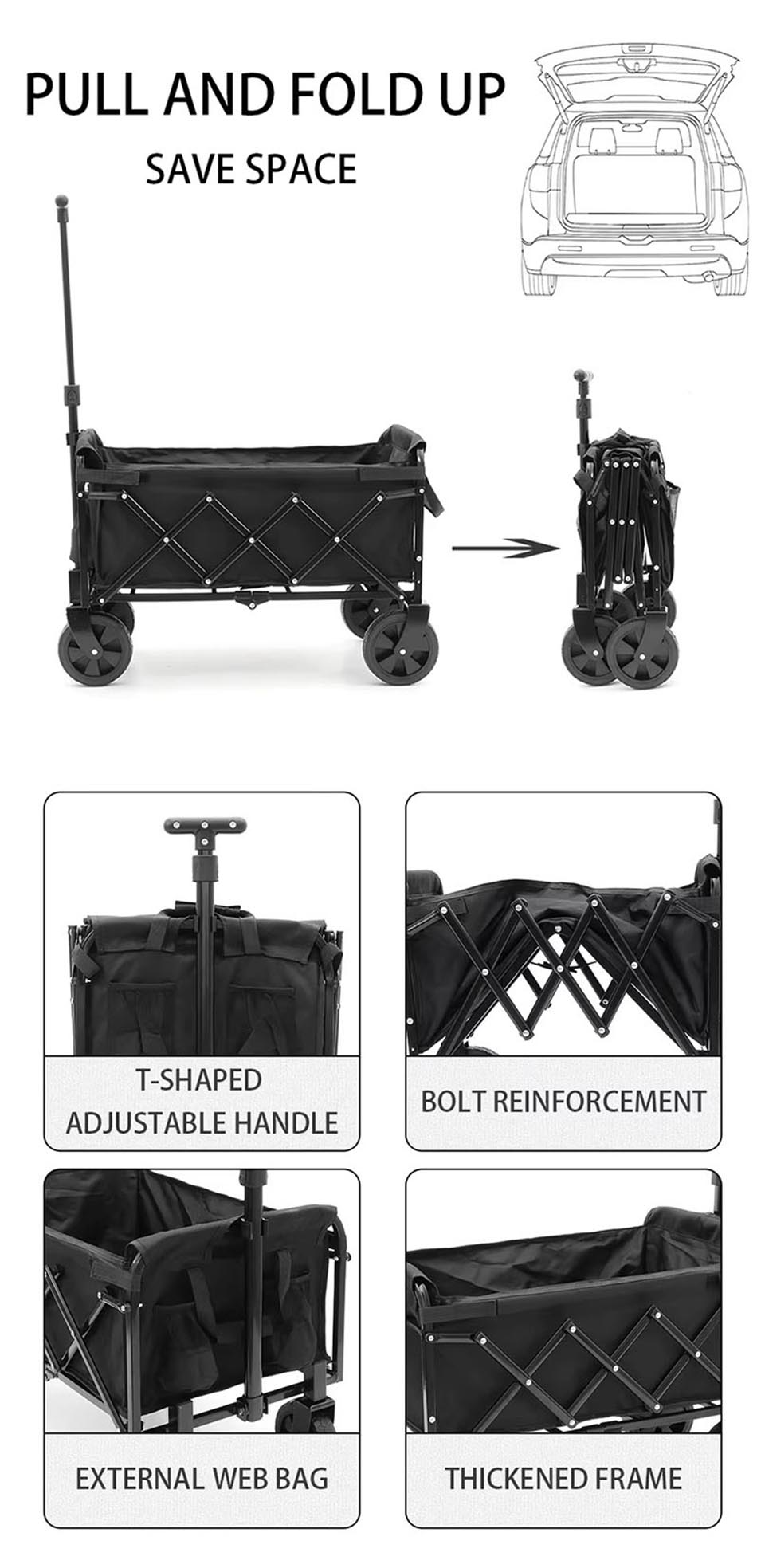 Custom Portable Foldable Large Capacity Travel Wagon With Open Door