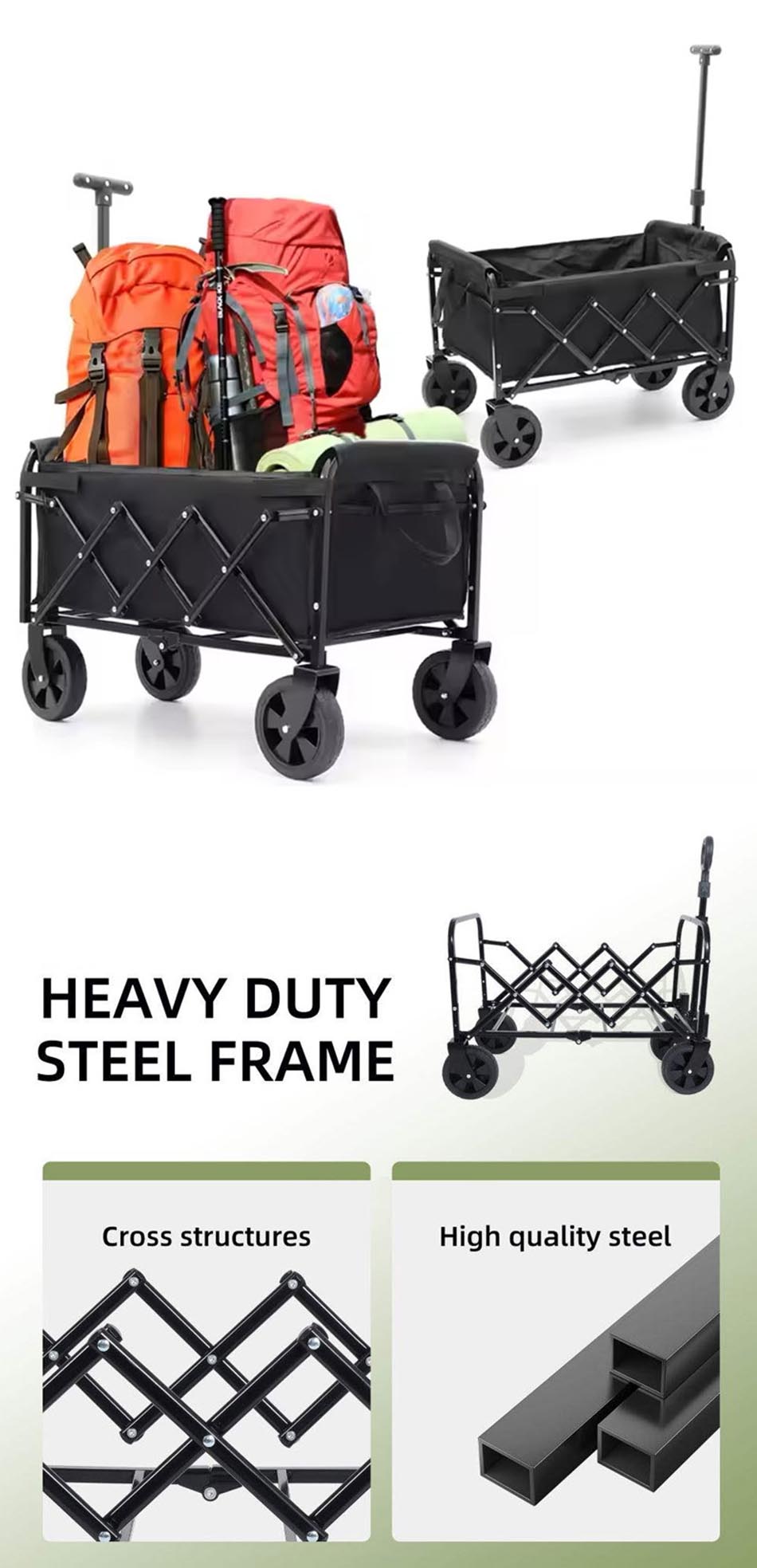 Collapsible Utility Heavy Duty Foldable Garden Stainless Steel Frame  Wagon Cart OEM Customized: