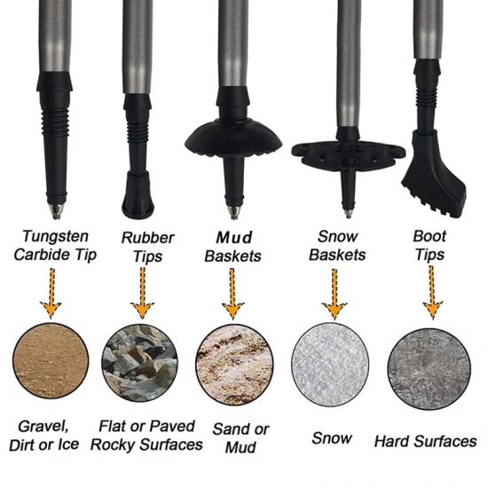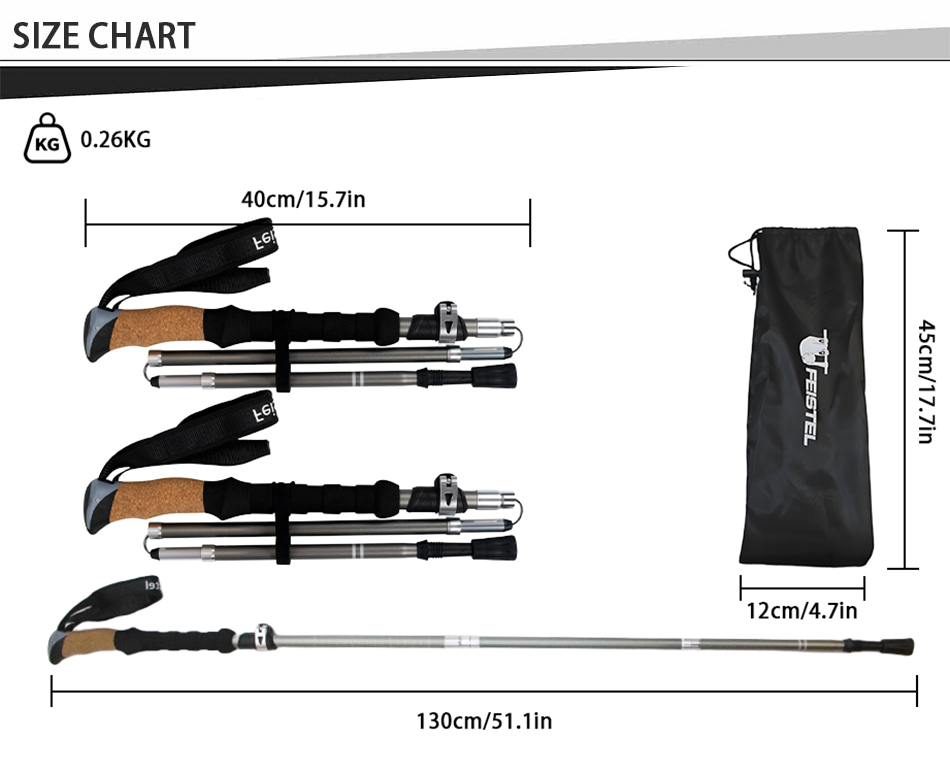 Brand: ANHUI FEISTEL FACTORY Relate Manufacturing: OEM & ODM Product: Lightweight, durable 7075 aluminum trekking poles with foldable design, improving stability, balance, and reducing strain on challenging hikes.