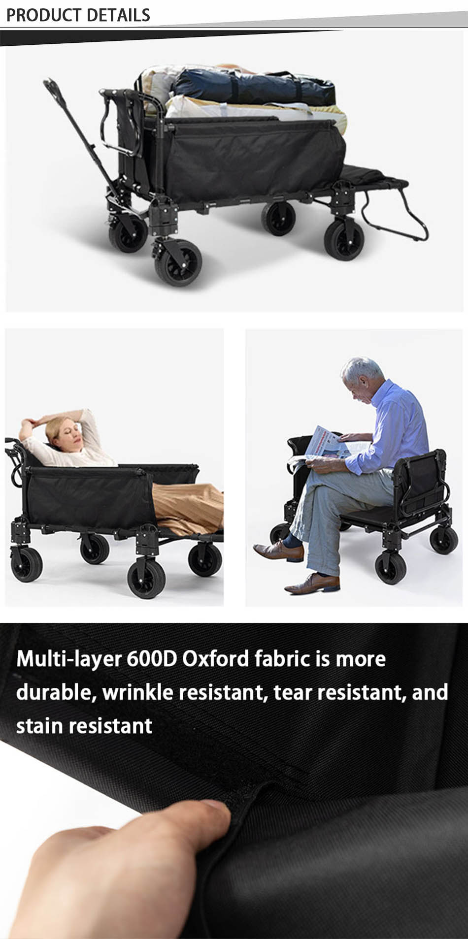 The Custom Multifunction Portable Hand Shopping Trolley Collapsible Sofa Bed Utility Wagon Cart is a versatile and innovative solution for shopping, travel, and outdoor use. Designed for maximum convenience, it functions as a shopping trolley, collapsible utility wagon, and even a sofa bed, making it ideal for various needs. The sturdy frame ensures durability and stability, while the foldable design allows for easy storage and transport. Equipped with smooth-rolling wheels and an ergonomic handle, it offers effortless maneuverability. The spacious interior provides ample storage for groceries, luggage, or camping gear. Its multifunctional capabilities make it perfect for picnics, travel, and everyday errands. Whether used as a transport cart or a relaxing seat, this all-in-one solution enhances comfort and practicality.