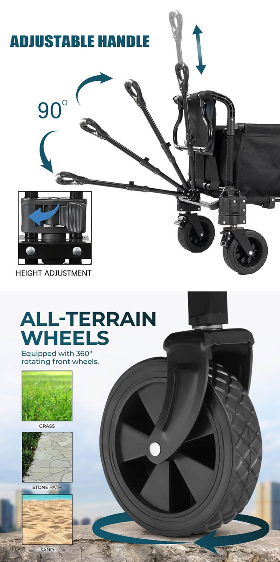 Brand: ANHUI FEISTEL FACTORY Relate Manufacturing: OEM & ODM Product: A versatile collapsible wagon for outdoor use, perfect for beach trips, shopping, and gardening. Durable, foldable design with all-terrain wheels ensures easy transport and storage.