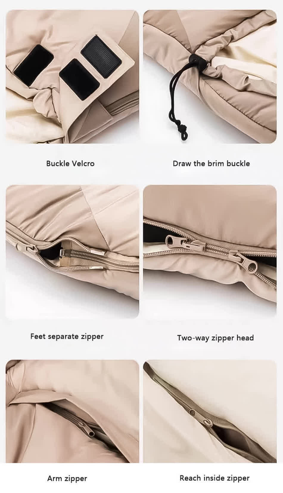 Brand: ANHUI FEISTEL FACTORY Relate Manufacturing: OEM & ODM Product: High-quality ultralight wearable sleeping bags, waterproof, ideal for outdoor camping, offering mobility, warmth, and comfort in various conditions.