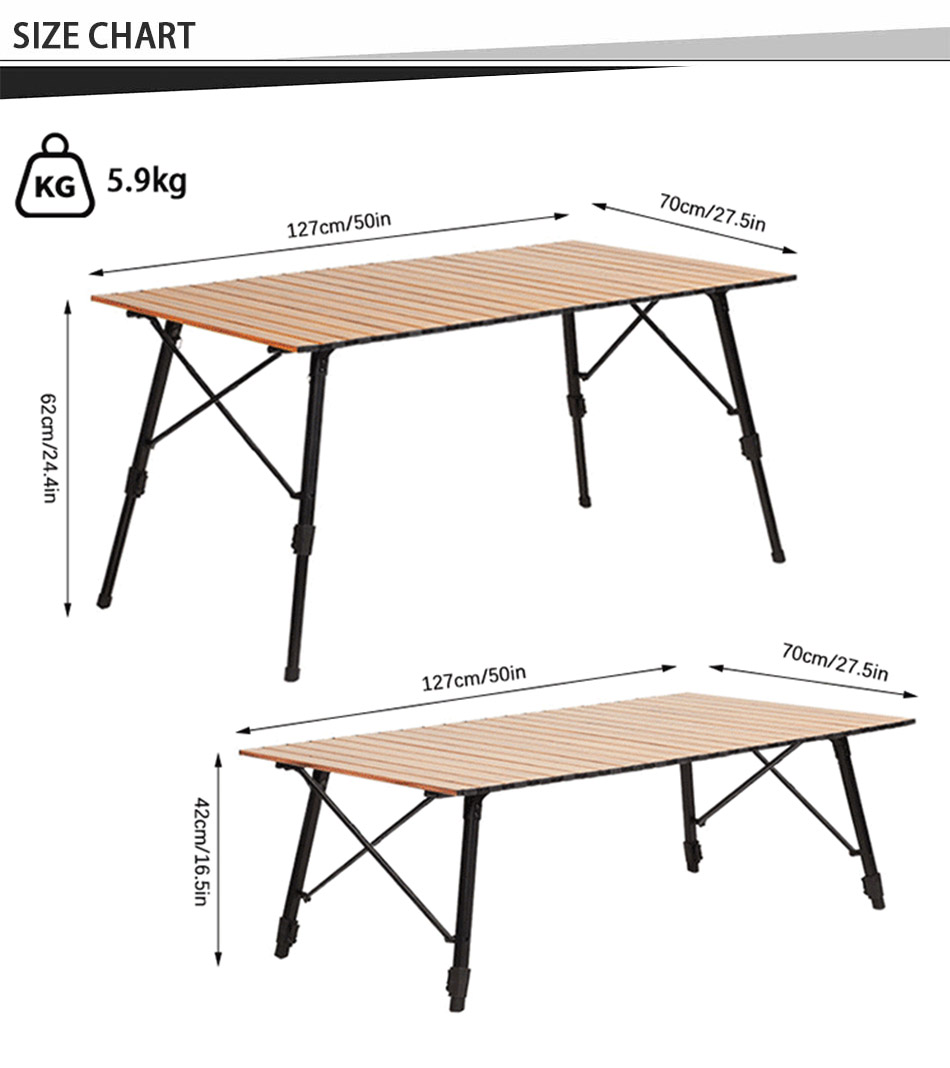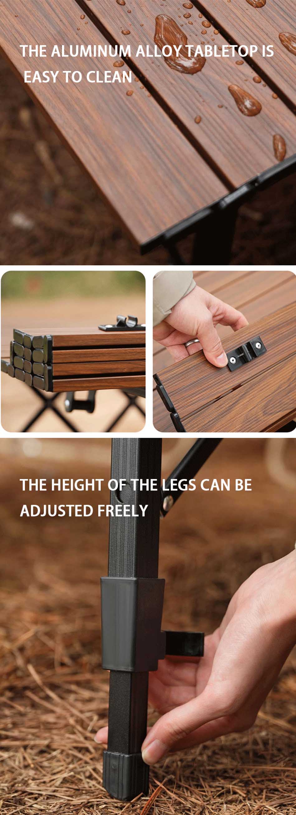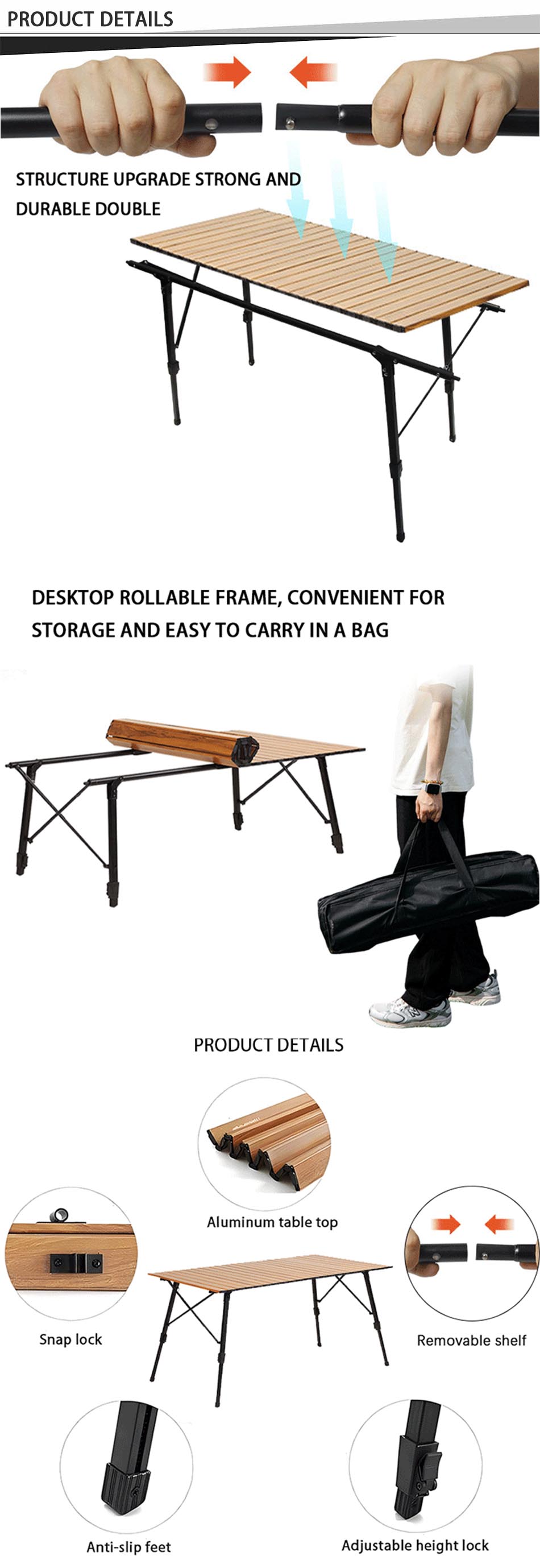 ProductLightweight, rustproof, anti-slip, heavy-duty, quick-release, corrosion-resistant, compact, space-saving, multi-scene custom outdoor camping portable folding aluminum height adjustable table.