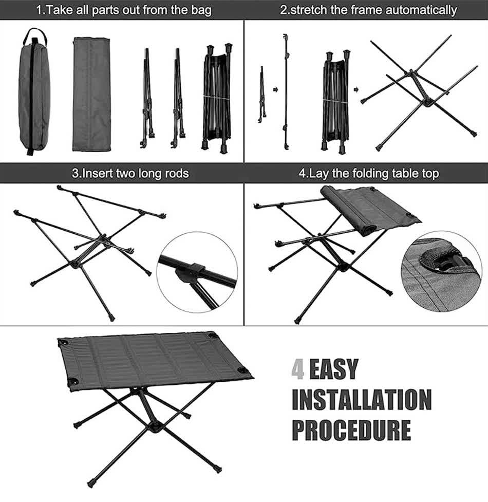 Brand: ANHUI FEISTEL FACTORY Relate Manufacturing: OEM & ODM Product: The Outdoor Folding IGT Camping Table Kit with Carrying Bag is a versatile and portable table designed for outdoor activities such as hiking, BBQs, and beach outings, offering easy setup, compact storage, and durability for on-the-go use.