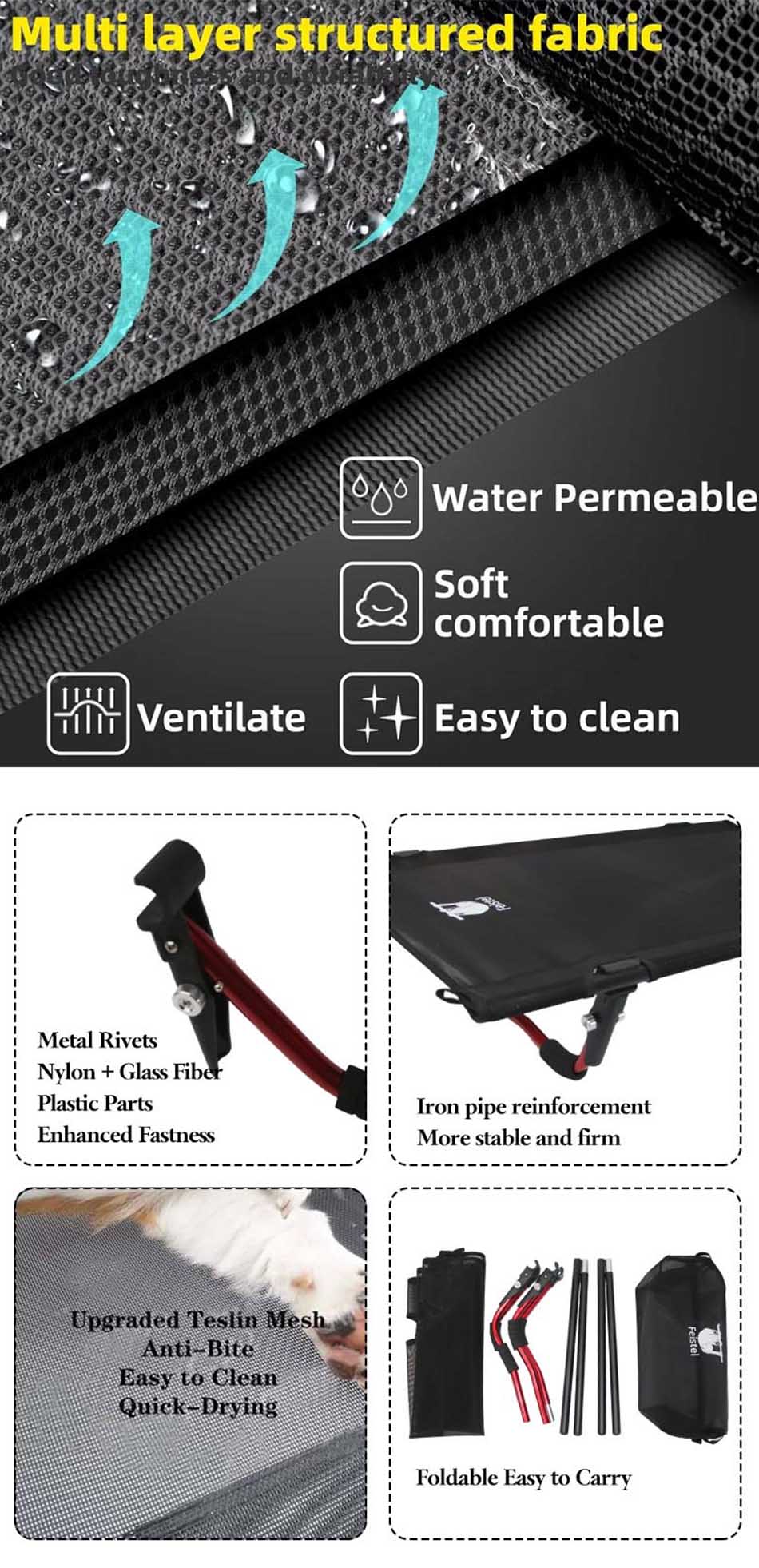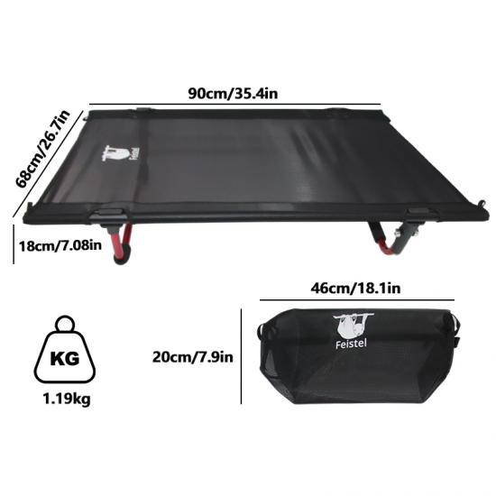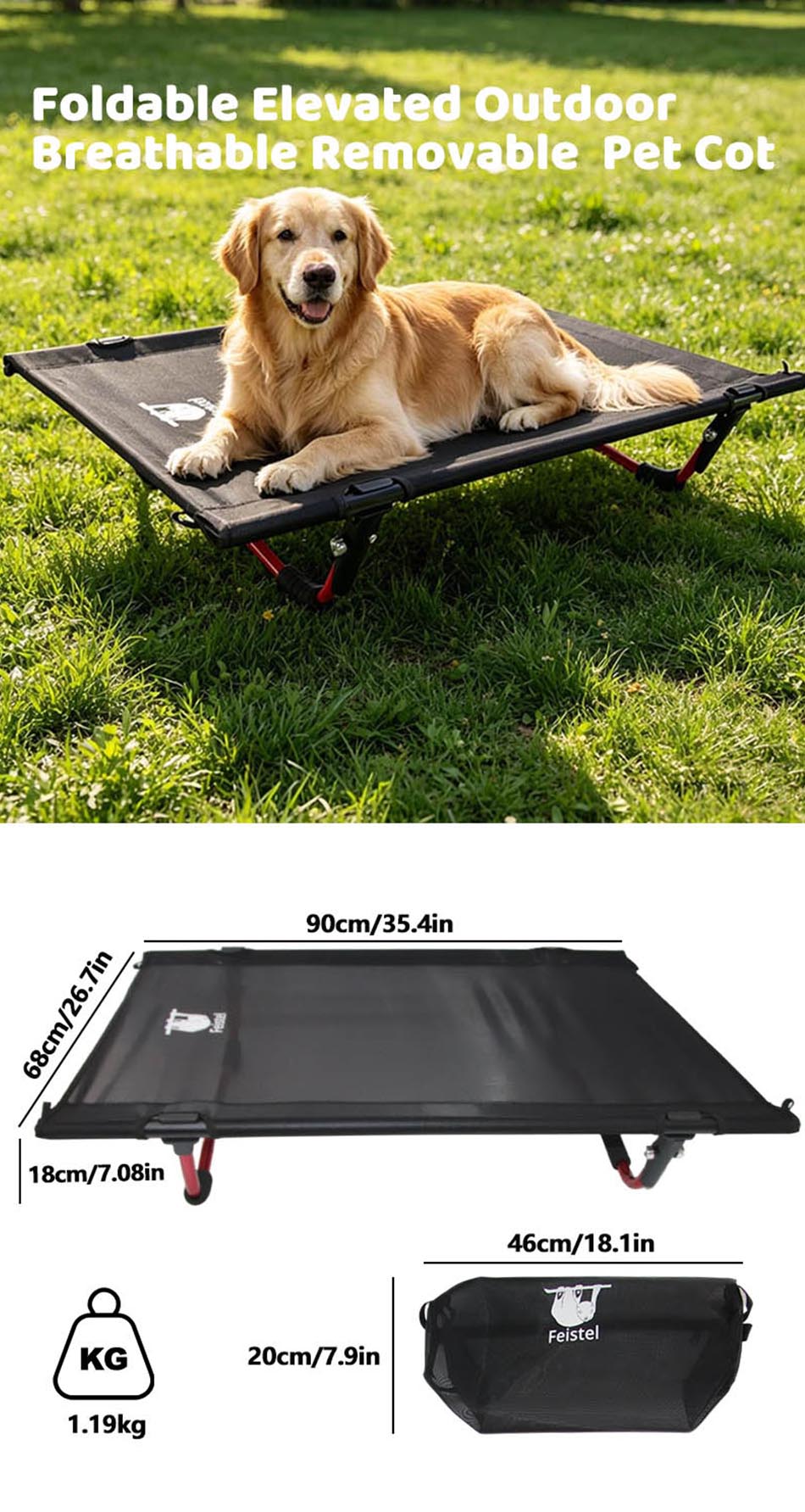 ProductFeaturing your customized logo for brand identity, this ultralight folding outdoor pet cot provides a durable, breathable, and elevated resting surface that keeps your pet cool and comfortable on any adventure, while its compact foldable design allows for effortless transport and instant setup.