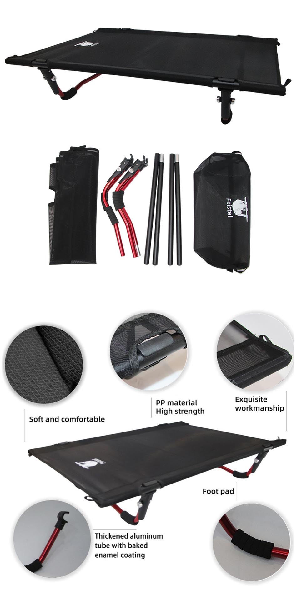 Brand: ANHUI FEISTEL FACTORY Relate Manufacturing: OEM & ODM Product: An ultralight, foldable aluminum camping cot perfect for backpacking. Compact, durable, and easy to set up, providing comfort and convenience for outdoor adventures.