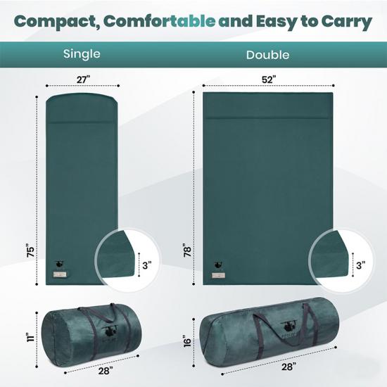 Thick Sleep Support: Do you want to sleep comfortably anywhere? This premium portable camping mat is perfect; very sturdy and very comfortable-perfect for any sleeping position! Lightweight and portable-backpacking: The perfect sleeping pad for your trip! This ultra-lightweight and portable sleeping pad fits in any backpack and doesn't cause weight back pain. Very convenient to carry and comes with a stylish storage bag.
