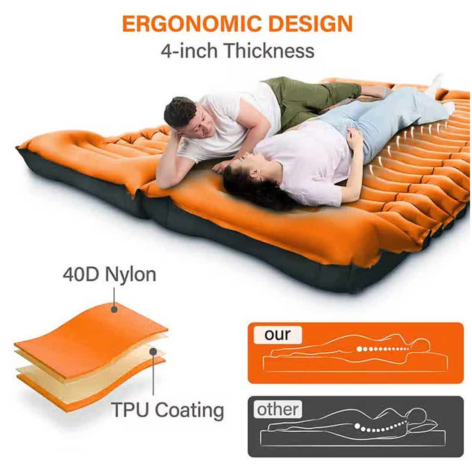 Double Inflating Camping Pad with Pillow And Built In Foot Pump