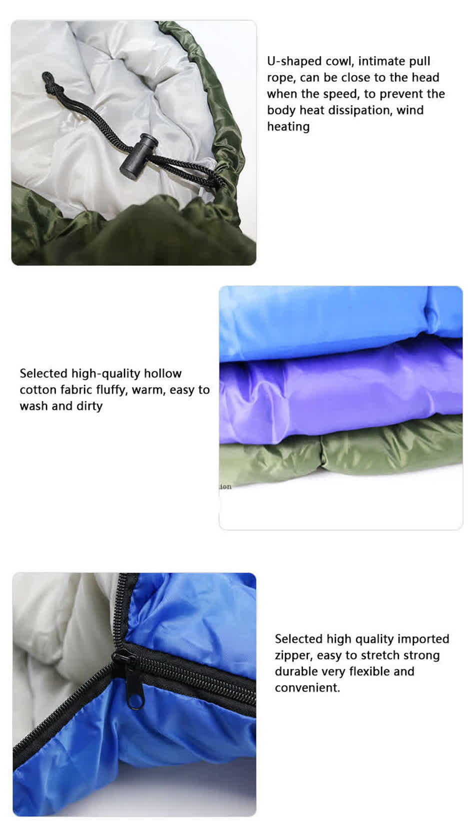 Brand: ANHUI FEISTEL FACTORY Relate Manufacturing: OEM & ODM Product: A thick, waterproof outdoor folding sleeping bag ideal for camping and hiking. Provides warmth, comfort, and protection in various weather conditions. Easy to pack and carry.