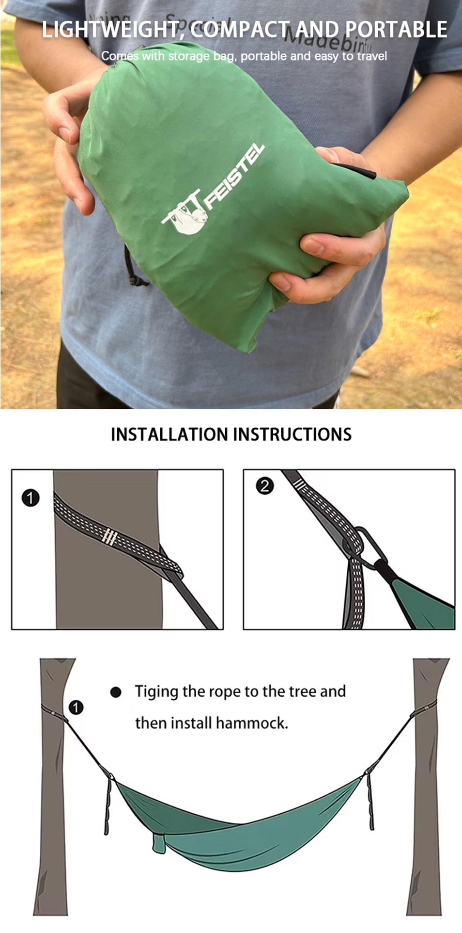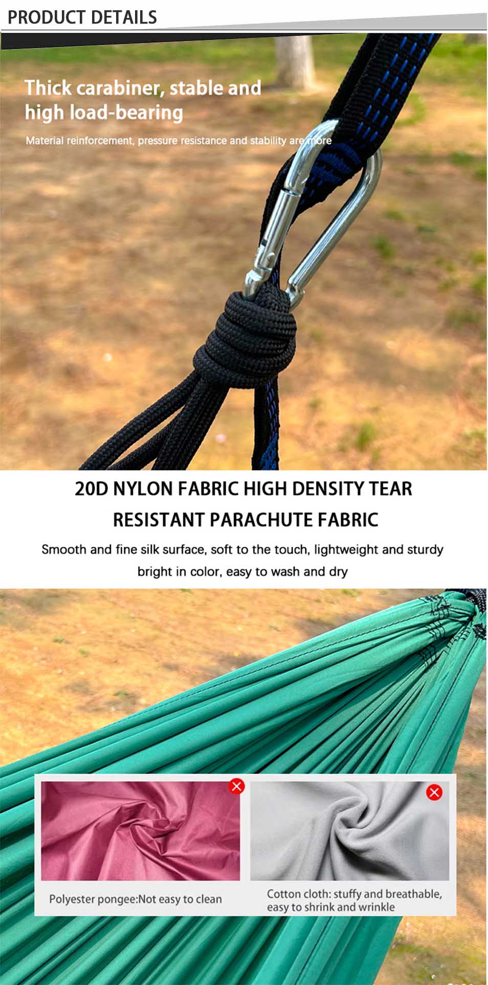 Experience the ultimate blend of comfort and resilience with our Durable Fabric Nylon Material 1-2 Person Portable Outdoor Camping Hammock, expertly crafted for hiking enthusiasts and outdoor adventurers. Made from high-density, ripstop nylon fabric, this hammock resists tears, abrasions, and moisture while remaining remarkably lightweight—perfect for backpacking. The breathable, quick-dry material ensures cool comfort even on humid summer nights, and its reinforced stitching supports up to 500 pounds, safely accommodating one or two people. Designed with portability in mind, the entire hammock packs down into its own integrated stuff sack, measuring just 8 x 5 inches and weighing under 1.5 pounds. Setup is effortless: two included heavy-duty carabiners and extra-long tree-friendly straps (no knots required) let you hang it securely between trees, posts, or stands in under two minutes. Whether you’re thru-hiking the Appalachian Trail, camping by a lake, or relaxing in your backyard, this versatile hammock delivers reliable performance. Use it as a cozy lounger, a spare bed, or even a makeshift gear shelter. The triple-interlocked seams and anti-rust aluminum hardware withstand harsh weather, UV exposure, and repeated use. Choose from four nature-inspired colors. Upgrade your outdoor gear today—adventure waits for no one, but this hammock is always ready to carry you through it in total comfort.