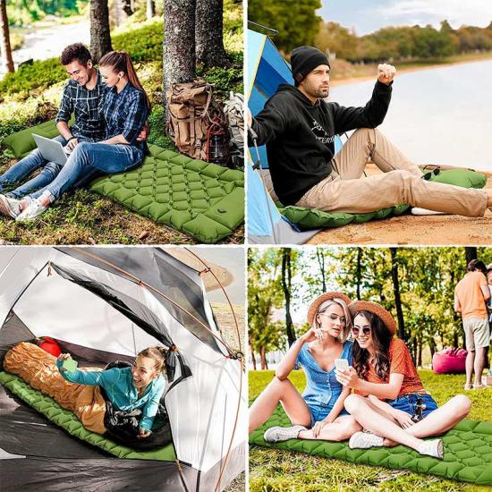 Brand: ANHUI FEISTEL FACTORY Relate Manufacturing: OEM & ODM Product: Portable double sleeping mat with built-in air pillow, easy inflation, lightweight, compact, perfect for camping, hiking, and backpacking.