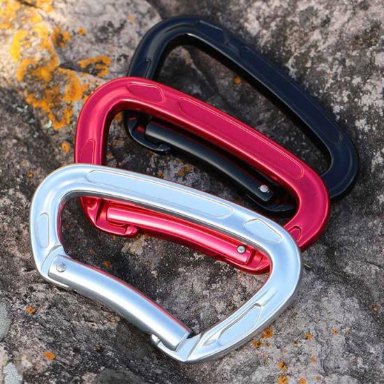 Product: Heavy-duty 22KN D-shape carabiner clip made from 7075 aluminum alloy, designed for climbing, hiking, and rescue. Strong, lightweight, and secure snap hook for outdoor use.