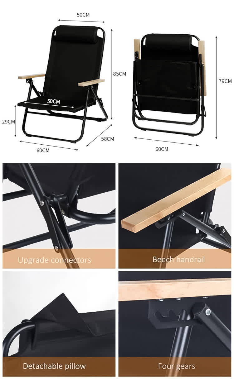 ProductThe Feistel Outdoor Folding Three Stage Steel Frame Portable Beach Camp Chair offers adjustable comfort, durability, and easy portability, ideal for various outdoor activities.