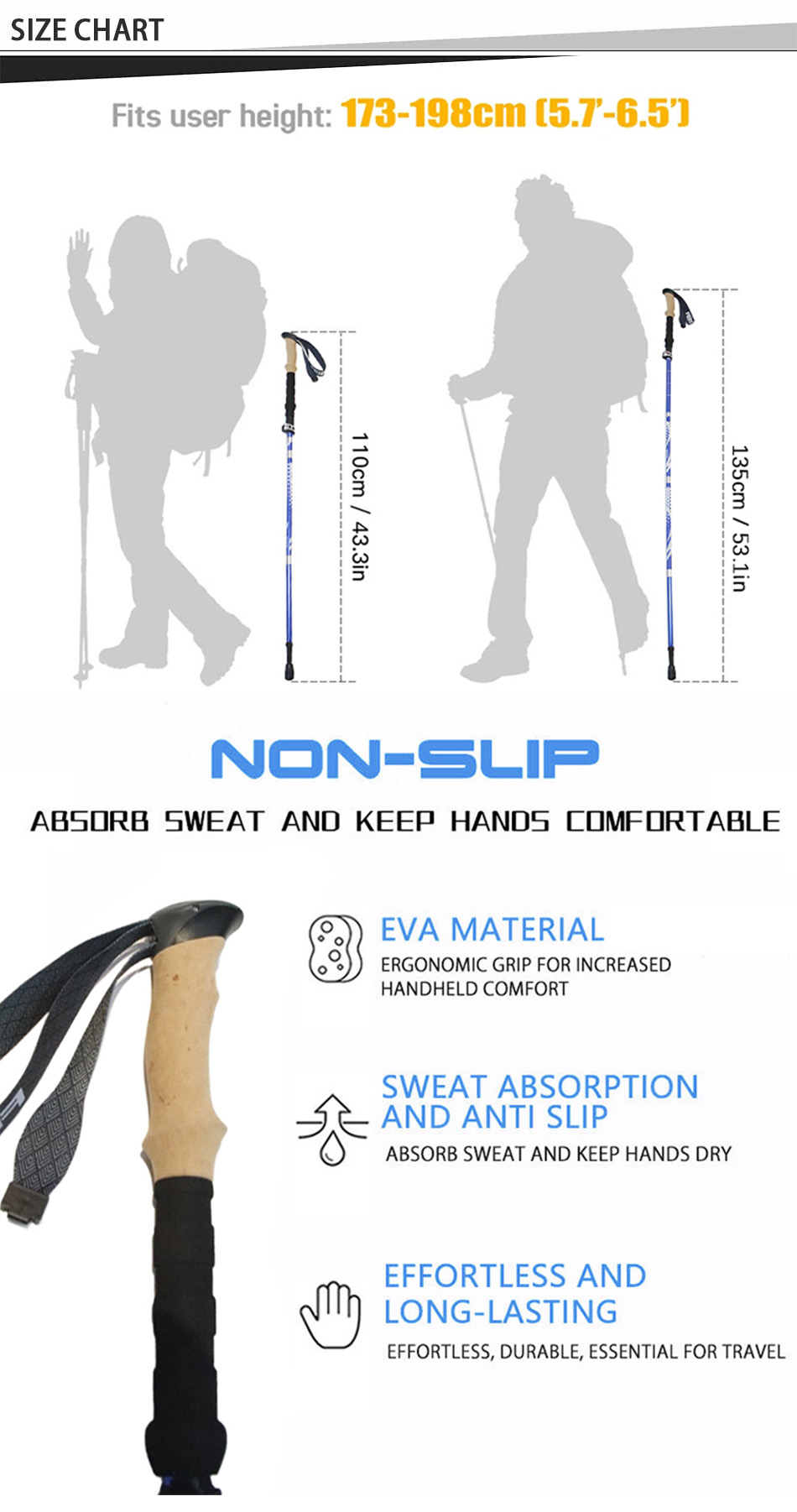 Brand: ANHUI FEISTEL FACTORY Relate Manufacturing: OEM & ODM Product: Lightweight, adjustable, and portable trekking poles with ergonomic foam grip, ideal for stability on varied terrains during outdoor adventures.