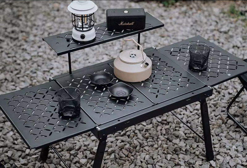 1. Folding camping table design: The folding design of the table is convenient to carry and save space.