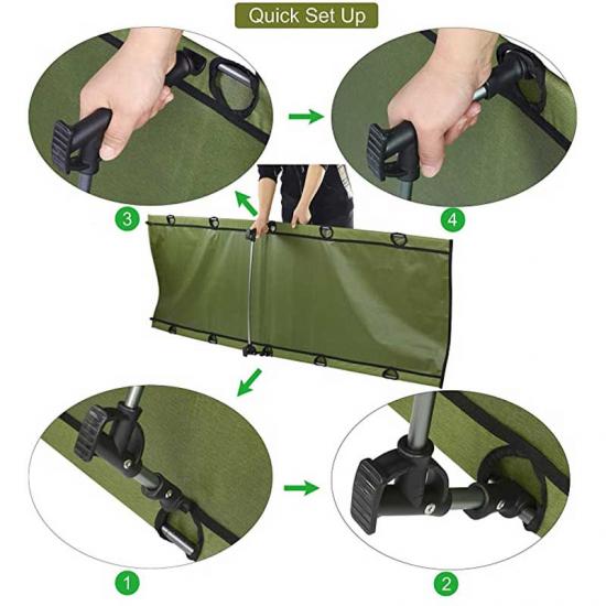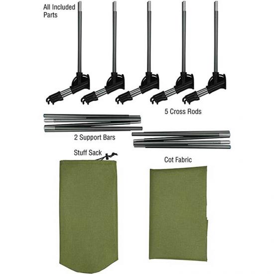 Easy to set up and remove: No tools required! Youcan install the camp bed in just a few minutes.The package includes 3 legs, 2 long poles, 12 height extension legs, crib fabric and storage bag.