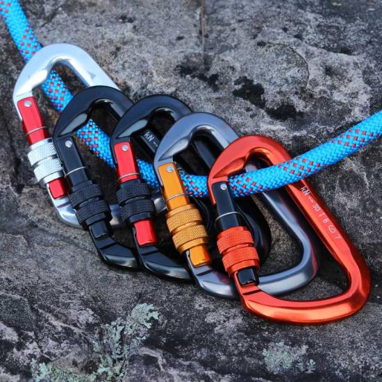 D-shaped Hot-forged Locking Climbing Hook with Screwgate Clip 30KN Climbing Carabiner