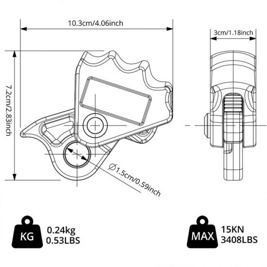 【Practicality】:Great for downhill, mountain climbing, rock climbing, outward bound, training and protection. Suitable for rope from 3.5in to 4.7in.