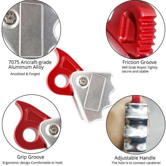 【Safety Guarantee】: CE 1019, EN341. Our rope grab riser has got CE Certificate, it’s safer and reliable which ensures your security during activity process.