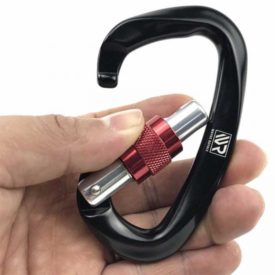 3)Screw locking carabiner :High quality design with threaded nut on the lock catch. It is delicate;
