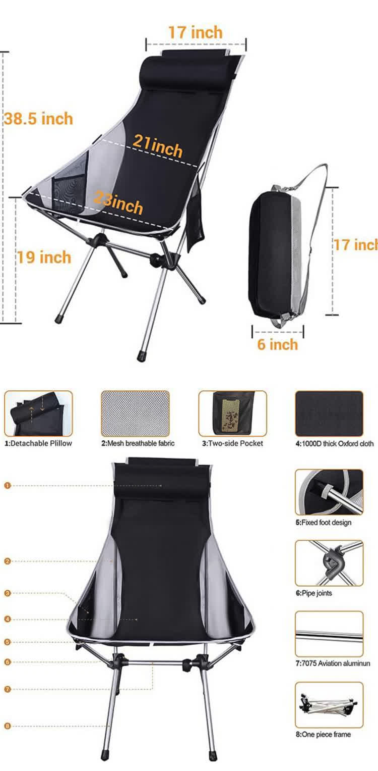 Hot-sale Ultralight Folding Camping Chair, Compact Portable Backpacking Chair - High Back