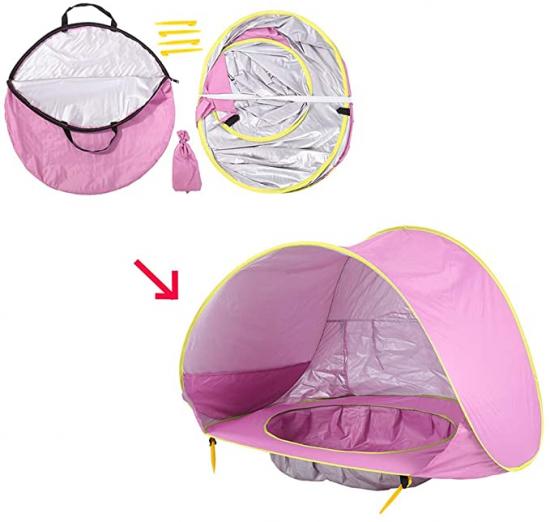 This automatic pop-up tent comes with a pool, which is suitable for children to play in the water on the beach and is safe from the sun.