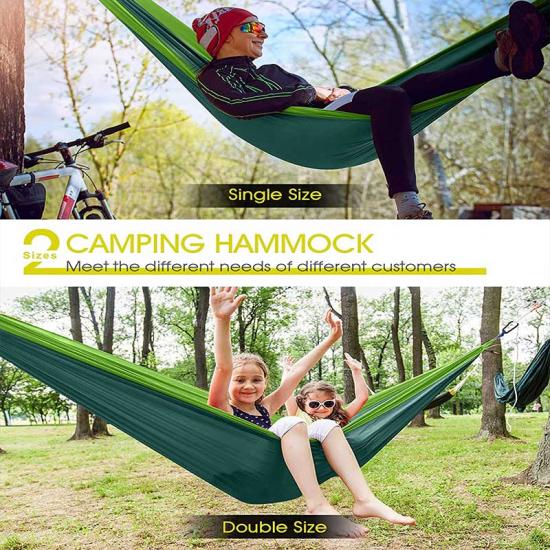 1. This outdoor travel hammock has 2 sizes, single hammock and double hammock, therefore, the weight of this hammock is also different, the maximum load of double hammock is: L: 226kg/500LBS; You can go with your family, or with you Share with friends, suitable for two people.