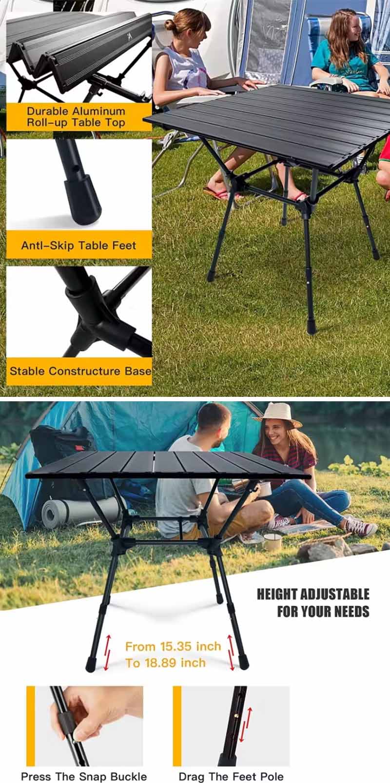 In pursuit of higher portability, the Aluminum Picnic Beach Table with Stable X-bar has been designed with a folding function, making it very lightweight and portable. Whether it's a busy office environment or a relaxed home life, outdoor tables can be folded up at any time for easy carrying and storage. Its versatility makes it not only a portable workbench for various purposes such as a desk, computer desk, coffee table, etc., but also an ideal choice for outdoor dining or camping activities.