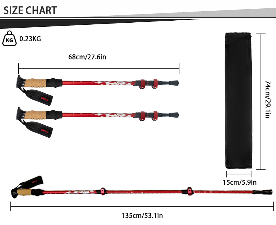 The Lightweight Aviation Grade Aluminum Trekking Poles with Extended Grips and Tip Accessories are engineered for outdoor enthusiasts seeking reliable stability and enhanced performance, featuring a durable yet ultralight aviation-grade aluminum construction that withstands demanding trails while reducing arm fatigue, extended ergonomic grips that offer comfortable hand placement on steep ascents or descents, and multiple interchangeable tip accessories designed to adapt to various terrains such as gravel, mud, snow, and rocky paths, providing superior traction and control; combined with adjustable height settings, a secure locking mechanism, and a collapsible design for easy packing, these trekking poles deliver improved balance, reduced impact on joints, and all-terrain versatility essential for hiking, trekking, backpacking, walking, and active outdoor adventures.