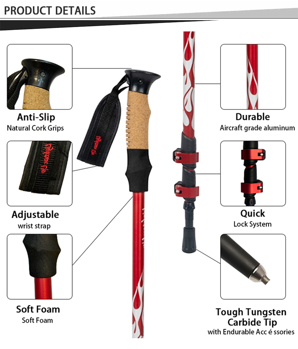 Hot Sell Aluminium 7075 Lightweight Hiking Walking Stick Trekking Poles