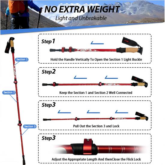 Lightweight Aviation Grade Aluminum Trekking Poles Extended Grips And Tip Accessories For Outdoor Active: