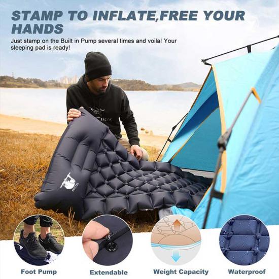 our camping sleeping pad could be inflated in 30 seconds.It will make more saving-time and saving-effort for you to inflate it when you want to use it.